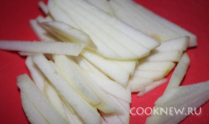 Яблоко почистить и порезать соломкой.