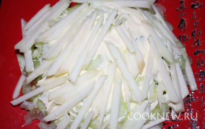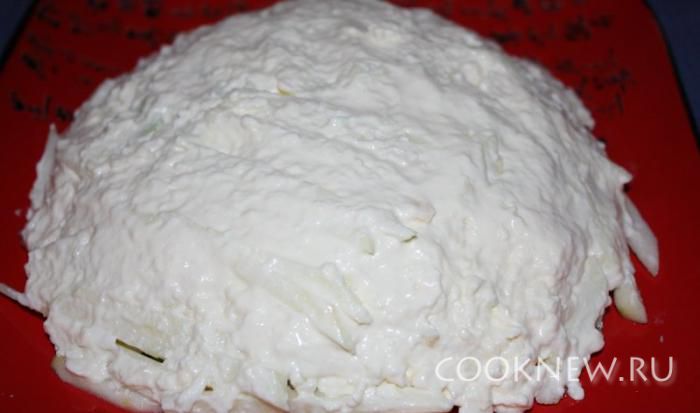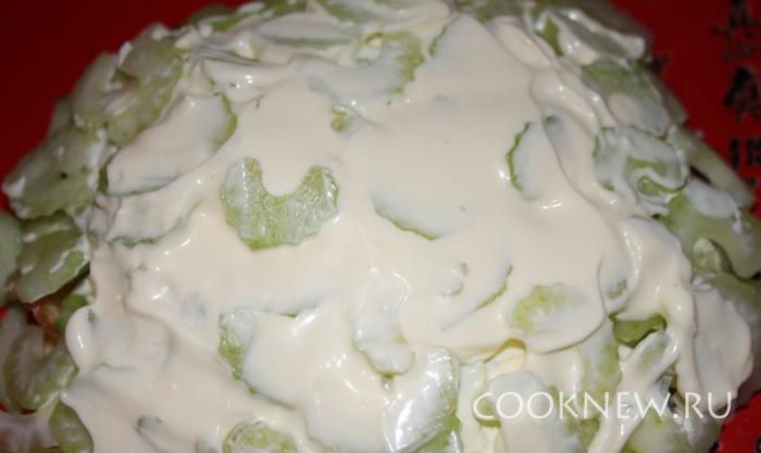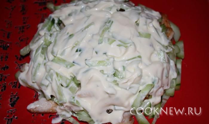 Выкладываем сверху и смазываем майонезом.