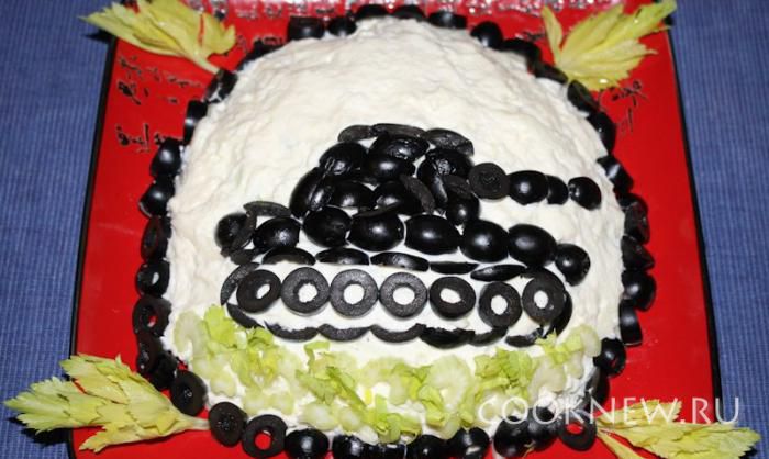 Украсить маслинами.