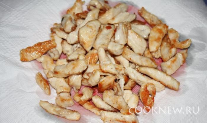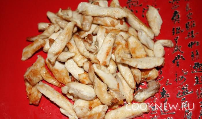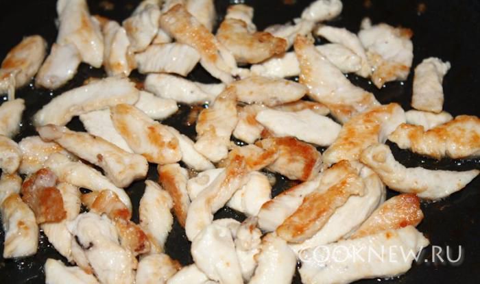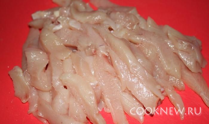 Курицу порезать небольшими кусочками.